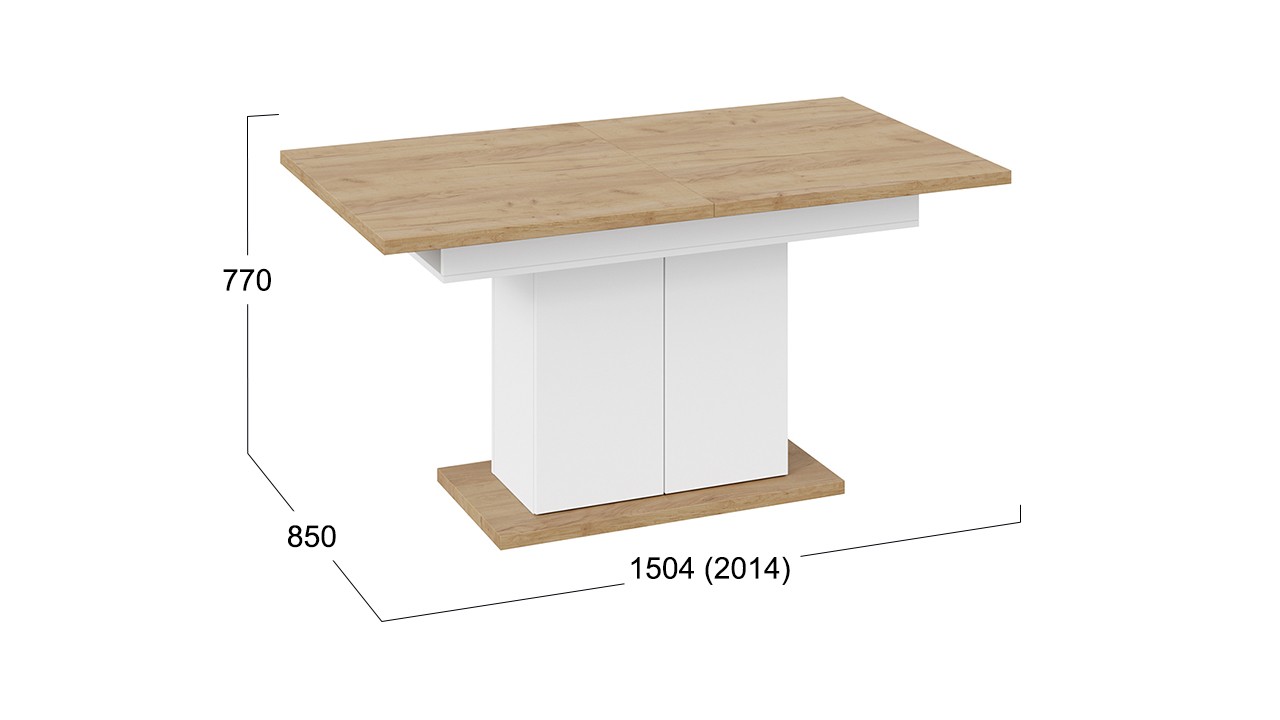 • Размеры стола: Длина 1504 мм (2014 мм в разложенном виде) x Ширина 850 мм x Высота 770 мм